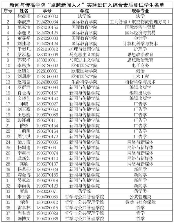 必赢国际官网“卓越新闻人才”实验班进入综合素质测试学生名单