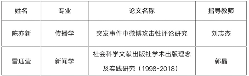 近日,我校2019年优秀博士、硕士学位论文评选结果公示。经过学院推荐、学校专家评审,陈亦新和雷珏莹的硕士学位论文被评为437ccm·必赢国际2019年优秀硕士学位论文。