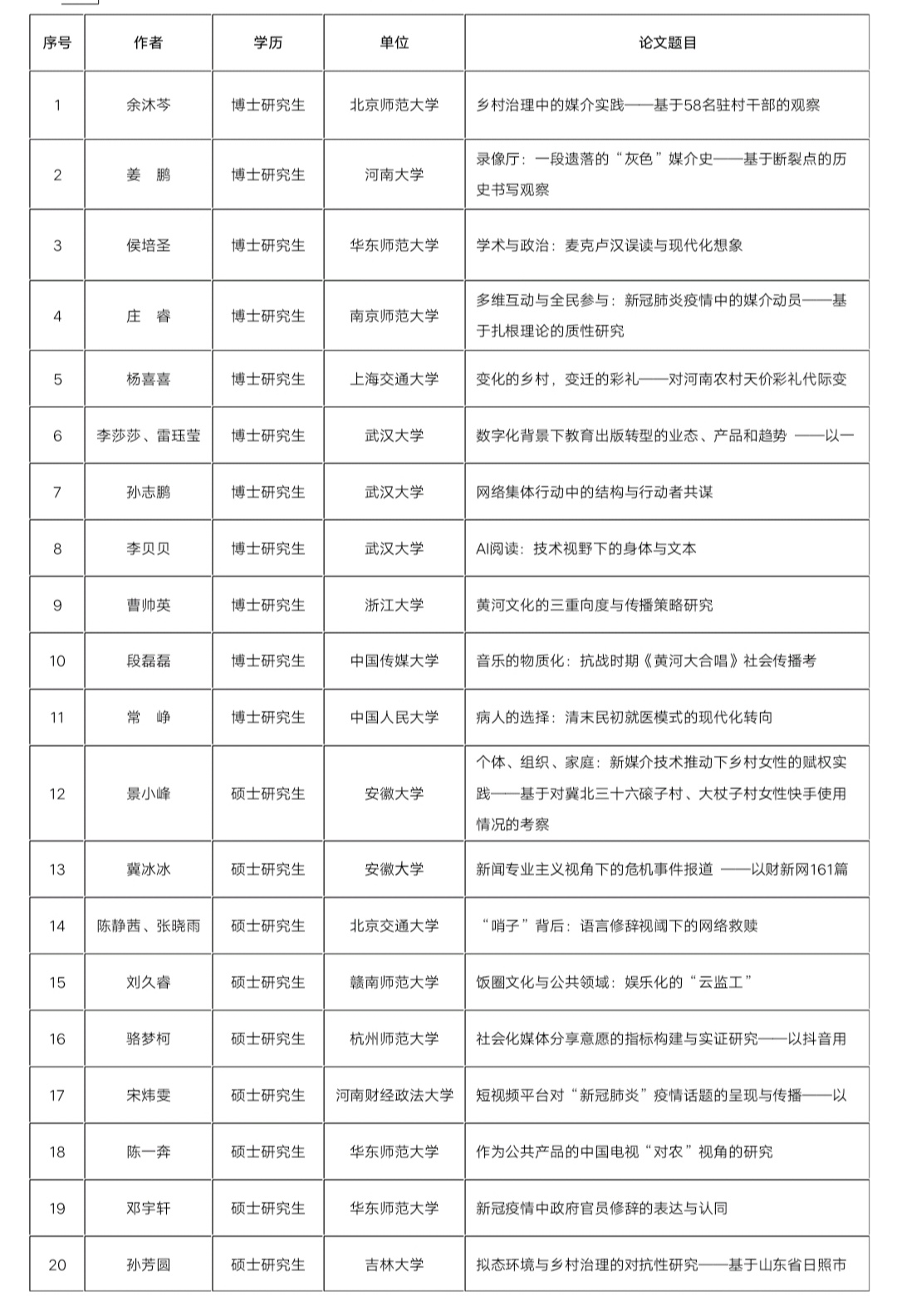 “第二届中原新闻与传播研究生学术论坛”入选论文