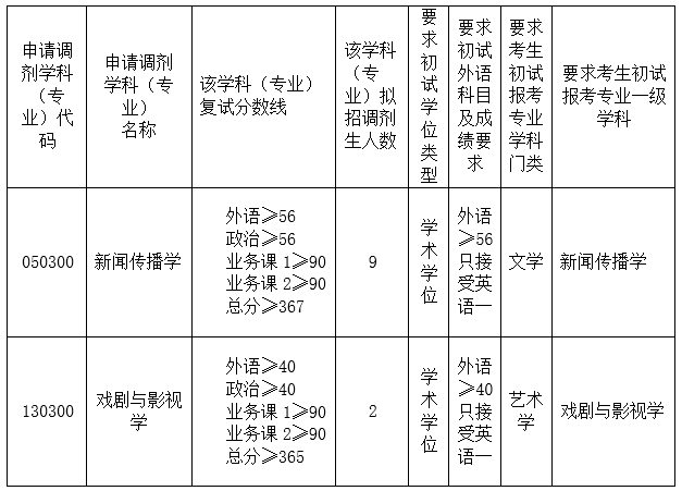 新闻传播学、戏剧与影视学。参加2022年新闻传播学、戏剧与影视学考试并满足本公告第二条要求的全日制考生均可申请。
