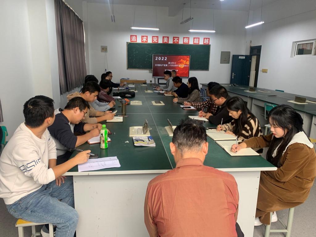 10月21日下午15:00,今年会直属党支部组织学习《中国共产党第二十次全国代表大会报告》,会议由支部书记吴访主持,全体党员教师参加学习。