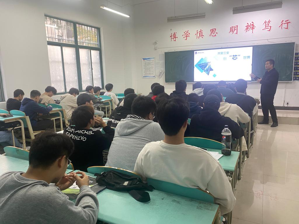 11月18日下午16点,今年会在1108教室举办芜湖三安光电股份有限公司专场招聘会,继续为20级即将顶岗实习的学生推荐优秀企业。20级电气自动化技术专业3+2班的同学参加了招聘会。【撰稿:尹楠 摄影:尹楠 审核:刘国华】