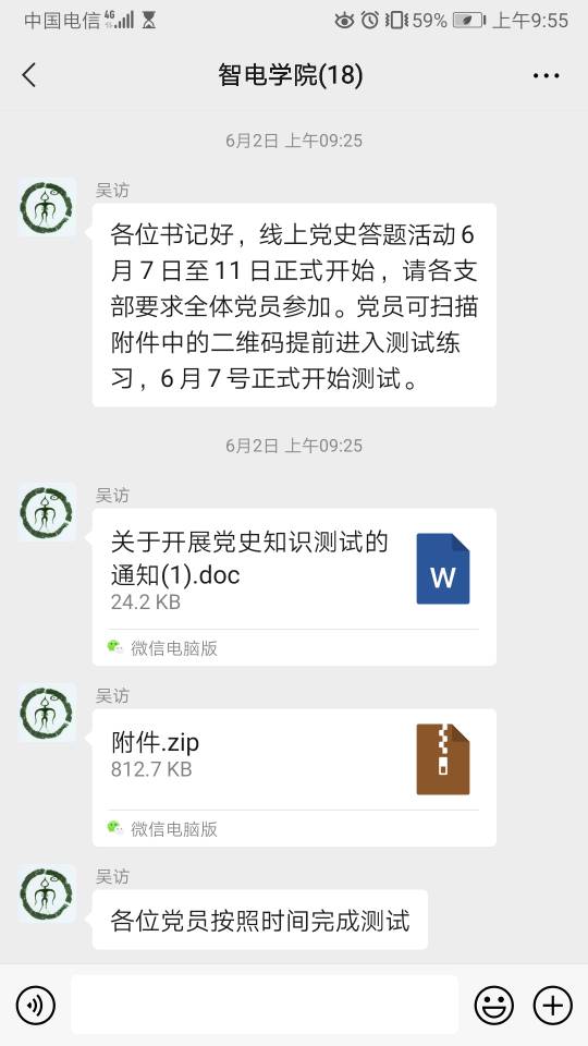 学院直属党支部利用微信和QQ平台,第一时间将党史知识测试通知全体党员,定期督促党员完成党史知识测试。引导全体员工学党史、悟思想、办实事、开新局,提高全员思想认识和政治站位,为学院高质量发展筑牢思想根基;下一步支部将立足实际,开展各类主题突出、特色鲜明的党史学习教育与活动,掀起学习热潮,用百年党史鼓舞斗志、明确方向。