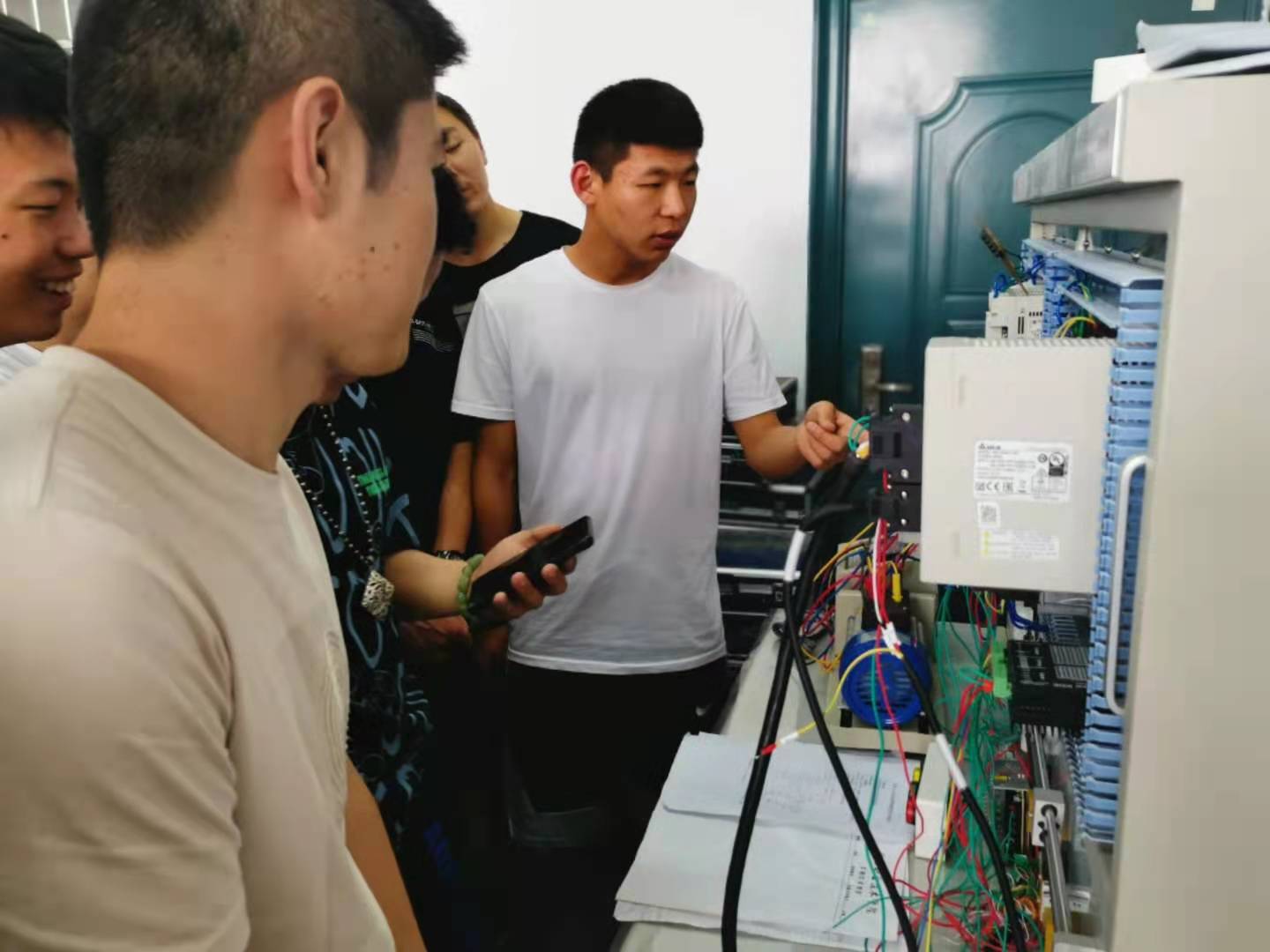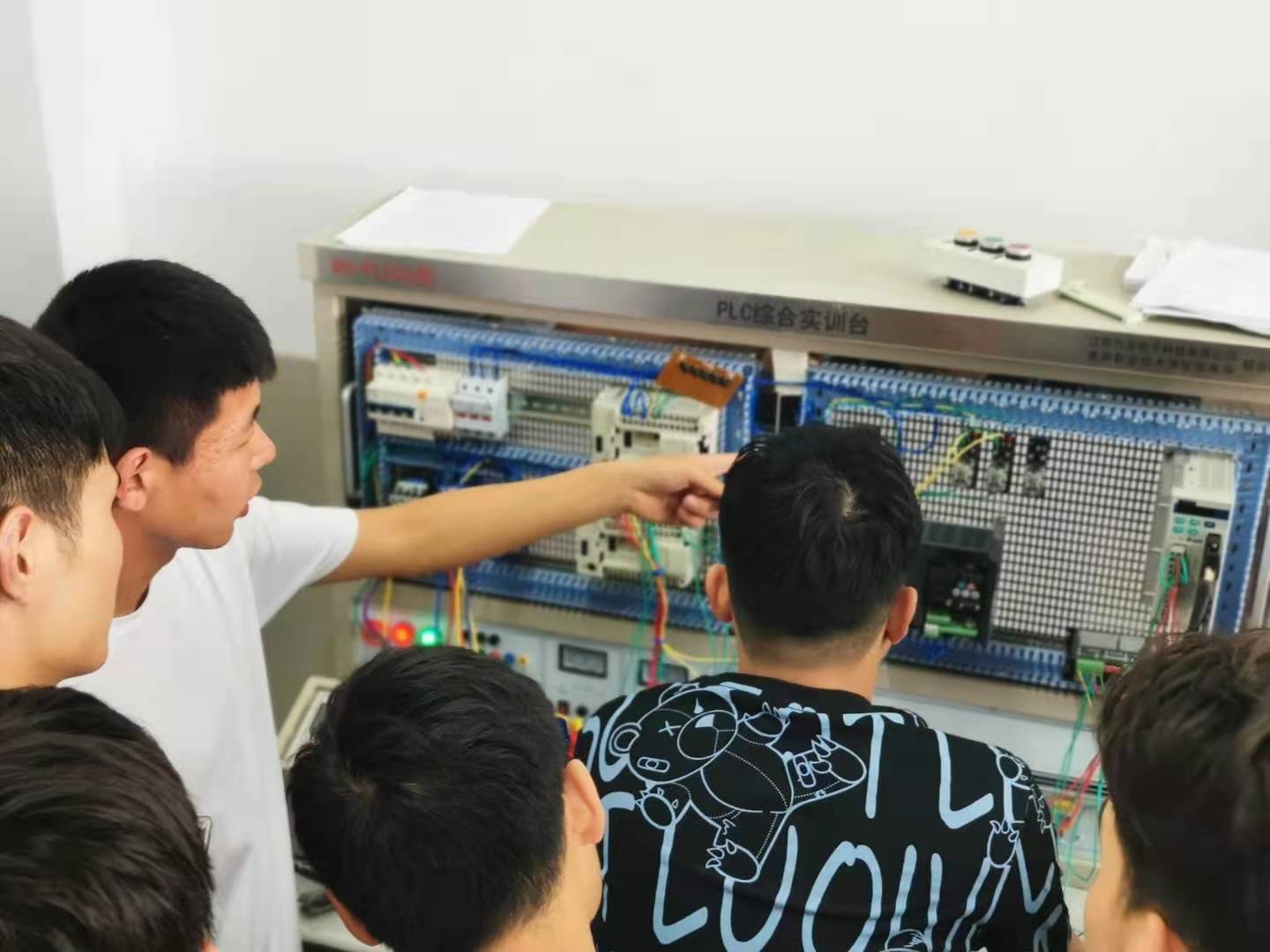 活动场所设置在实验楼S510实训室,智电学院电子自动化专业的同学分批参与了活动。现场邀请2020年安徽省职业院校技能大赛获奖同学讲解赛题、分解知识点、介绍系统组成、展示实操接线等知识。