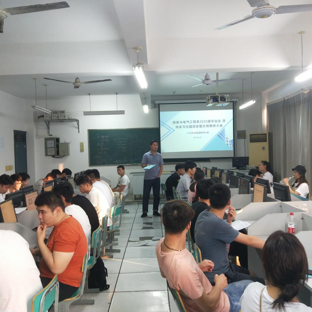 为了进一步完善我系毕业生顶岗实习和就业工作,引导学生做好顶岗实习的心理准备,7月2日下午3:30,信息与电气工程系在试验楼401教室举行2020届毕业生顶岗实习暨就业动员大会。信电系团总支副书记章晓智老师参加了本次会议。