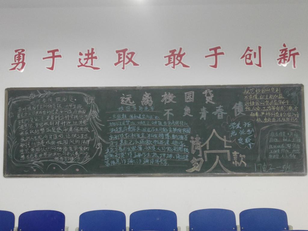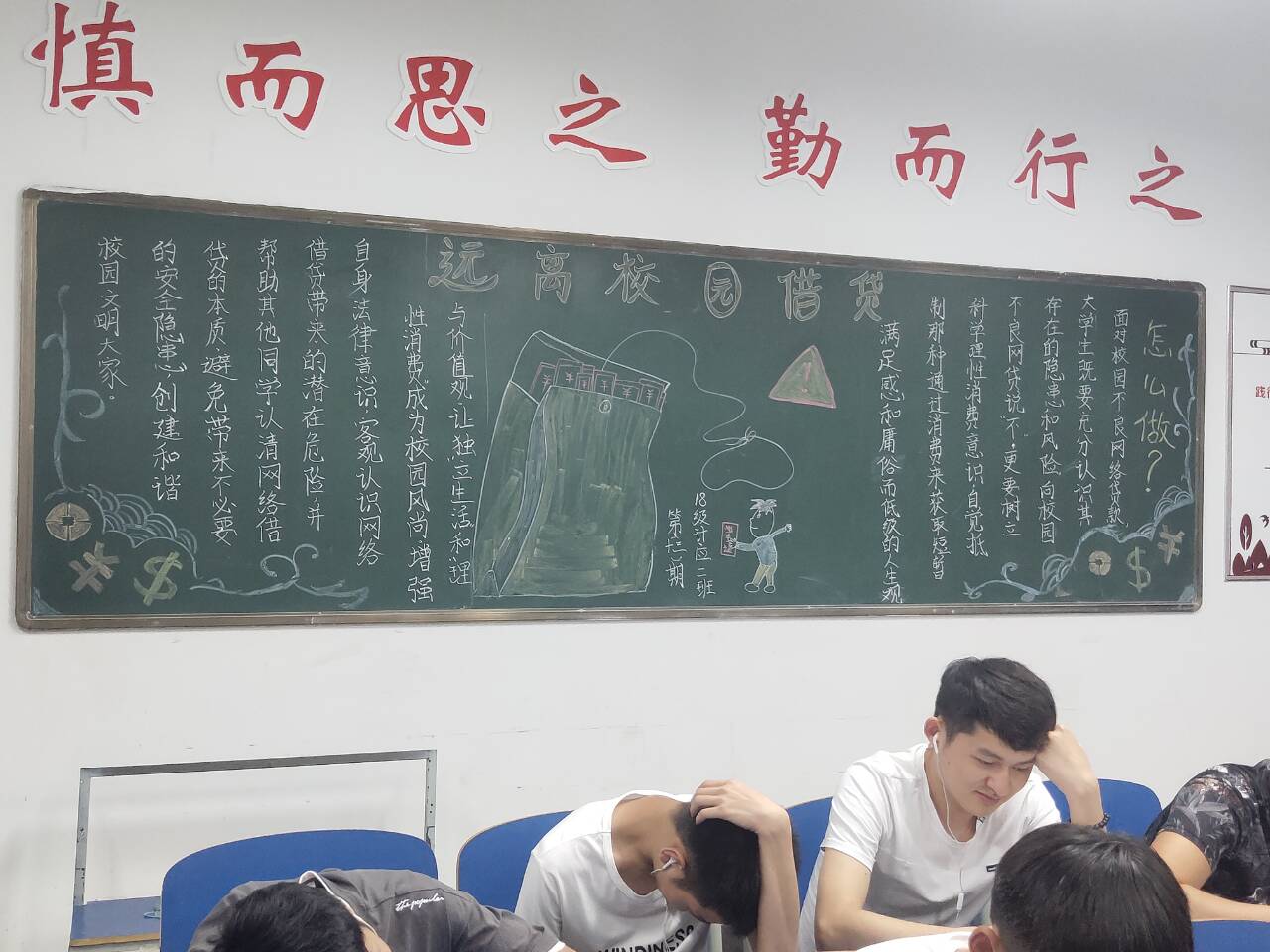 为此,信息与电气工程系举办校园贷黑板报评选活动。主要是为了让同学们了解校园贷,消除他们对校园贷的想法。