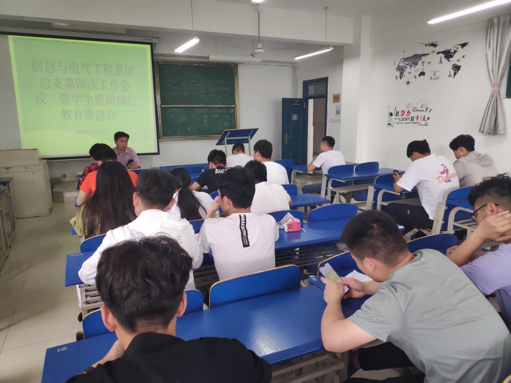 5月13日中午11时40分,信息与电气工程系团总支在4301教室召开了本学期第四次工作会议,暨“学生诚信教育”专题工作会议。信息与电气工程系团总支书记章晓智老师,17级和18级各班班长,以及学生会相关部门负责人参加了本次会议。