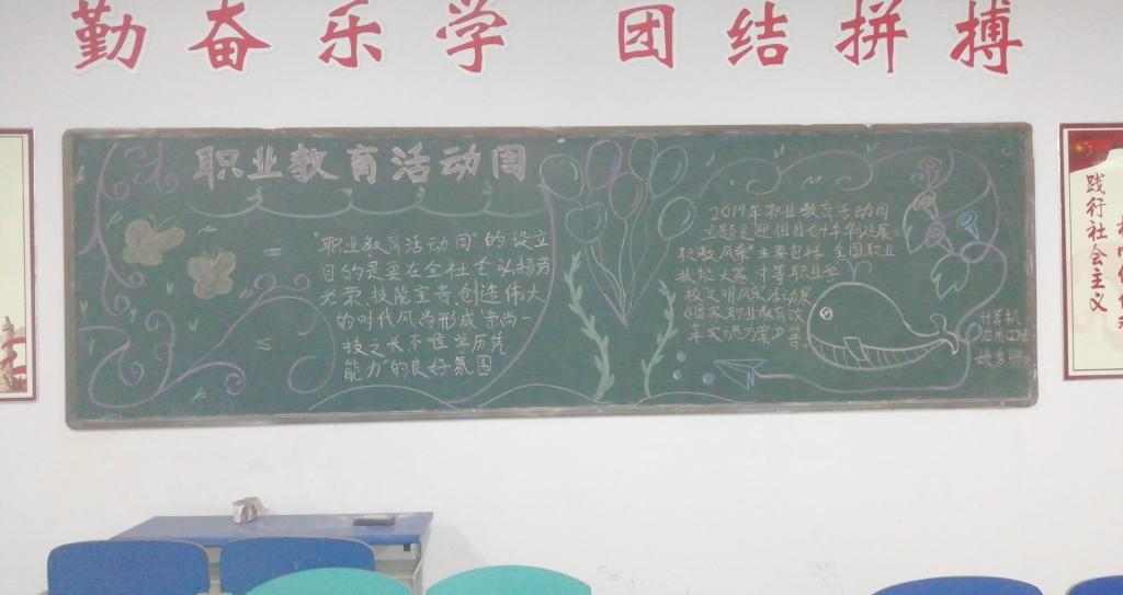 为深入贯彻国家关于加快发展现代职业教育的决策部署,信息与电气工程系各班级举办了以“职业教育活动周”为主题的黑板报评选活动。