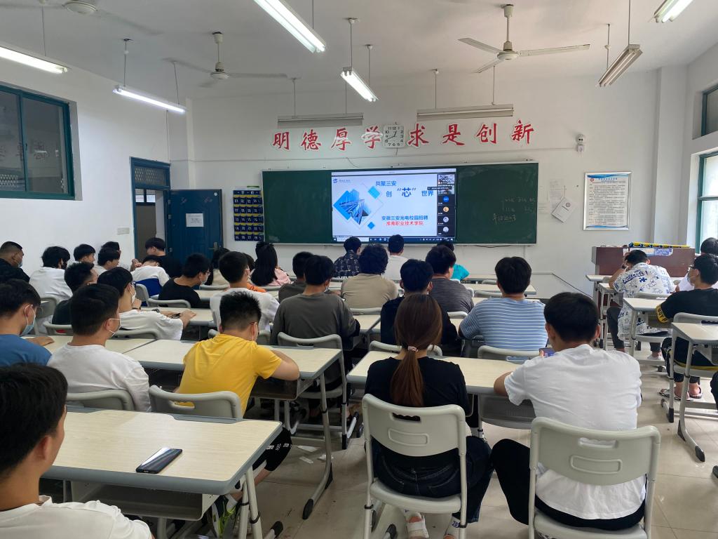 为助力实习生更充分、更高质量实习就业,在疫情常态防控的背景下,5月26日下午16:30,今年会在1203教室举办芜湖三安光电股份有限公司线上专场招聘会,为20级和21级两年制即将顶岗实习的学生推荐优秀企业。20级电气自动化技术专业、21电气自动化技术两年制的同学参加了招聘会。【撰稿、摄影、发布:尹楠 审核:吴访】