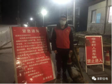 4.“我是党员,我来报到!”90后的年轻党员蔡德胜是2019级电气自动化技术专业社招班学生,在淮南市中安联合煤化有限责任公司工作。2月8日清晨,刚下夜班的蔡德胜,顾不上去医院照顾生病吊水的妻子,一大早就来到所居住的泰府名邸小区值守,并帮助社区干部悬挂疫情防范横幅、向社区居民发放防疫宣传单、为出入的小区居民测量体温等,尽心尽力做好各项防疫工作。