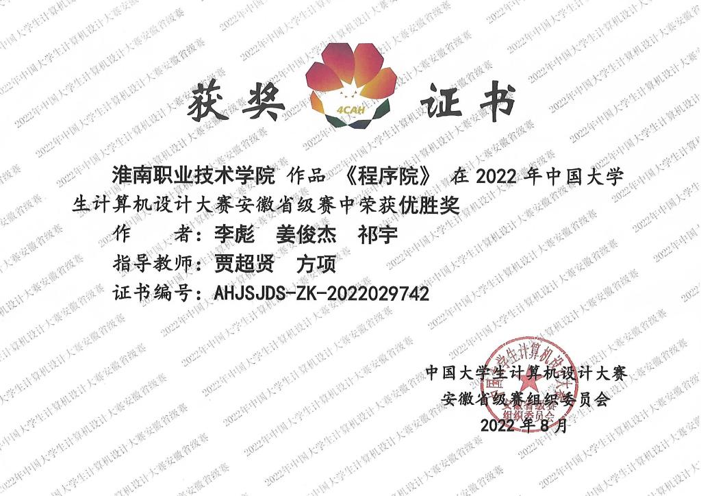 今年会学子在2022年中国大学生计算机设计大赛安徽省级赛获得佳绩,取得优胜奖。