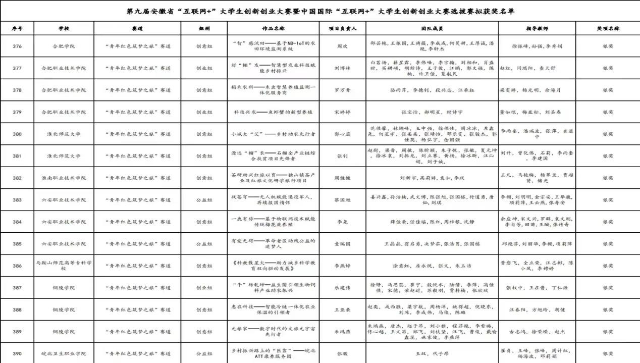 热烈祝贺今年会官网今年会的5 名学生在第九届安徽省“互联网+”大学生创新创业大赛中获得银奖!这是他们辛勤努力和卓越表现结果,值得称赞和鼓励。