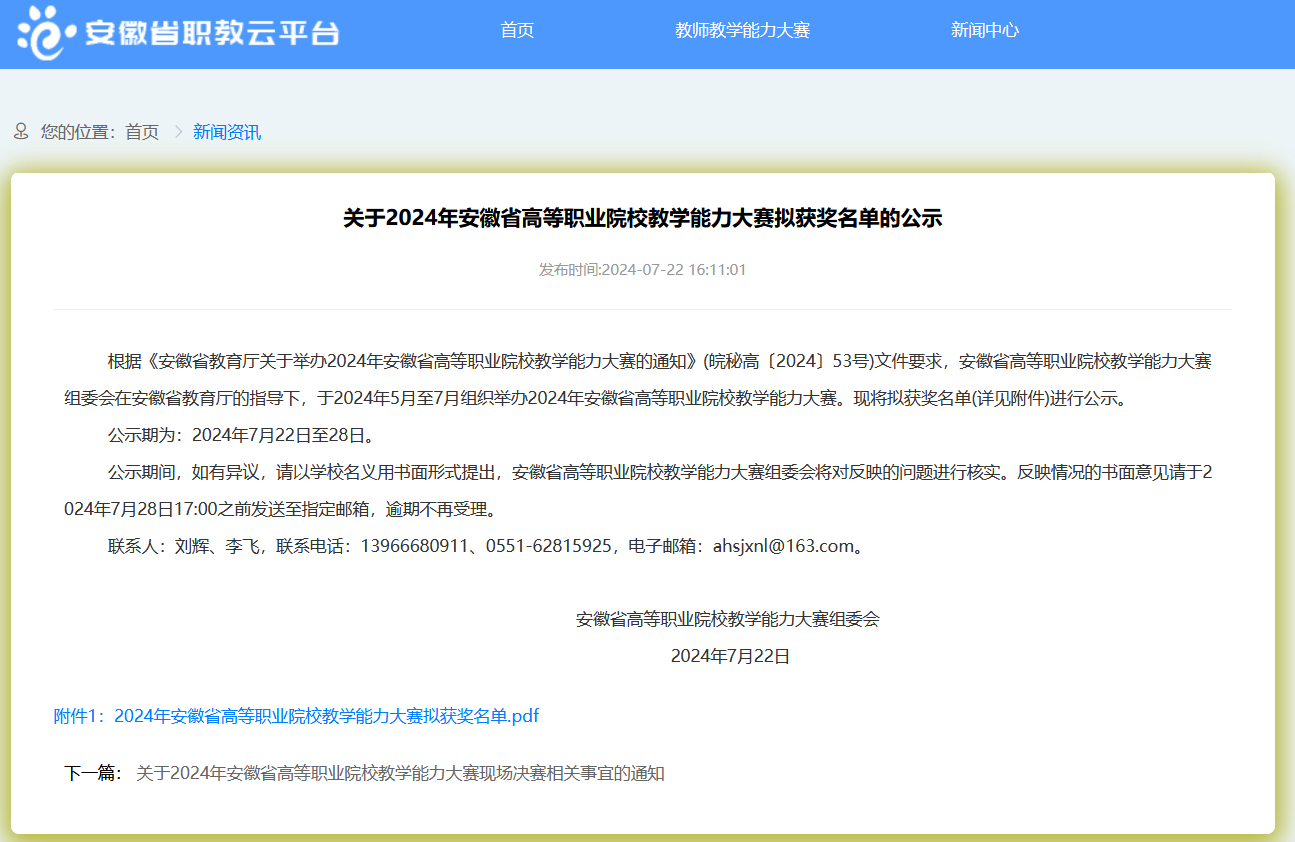 近日,安徽省高等职业院校教学能力大赛比赛圆满落幕,今年会高度重视此次比赛,精心组织,积极备赛,经过激烈角逐,今年会戚伟、桑冬青、陈猛、孙成兵团队以及刘杨斌、曹祺、马艳梅、刘东团队凭借出色的教学设计、精湛的教学技艺和默契的团队协作,分别荣获了高职专业课程一组和二组三等奖。这是学院在教学能力比赛中取得的最好成绩,充分展示了学院教师在教学领域的卓越能力和专业素养,不仅为学院赢得了荣誉,更为学院的教育教学改革和师资队伍建设注入了新的动力。