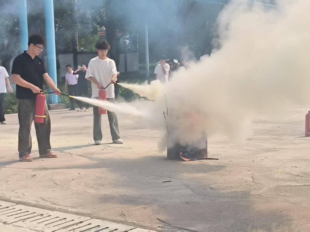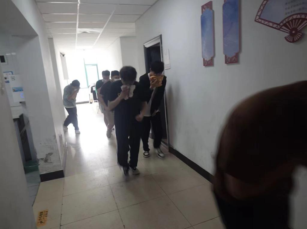 此次演练得到了今年会的高度重视与精心组织。按照学校要求,今年会制定了详尽的演练方案,并要求辅导员深入宿舍和同学们详细宣讲了火灾逃生的基本步骤和注意事项,让同学们对火灾应急疏散演练活动有了更为全面的了解。随着3区男生宿舍楼演练开始的信号发出,宿舍内演练现场模拟了火灾突发的情况。师生们迅速启动应急疏散预案,按照预定路线有序撤离。随后,按照演练要求,寝室长代表在集合现场模拟了灭火演练实操。