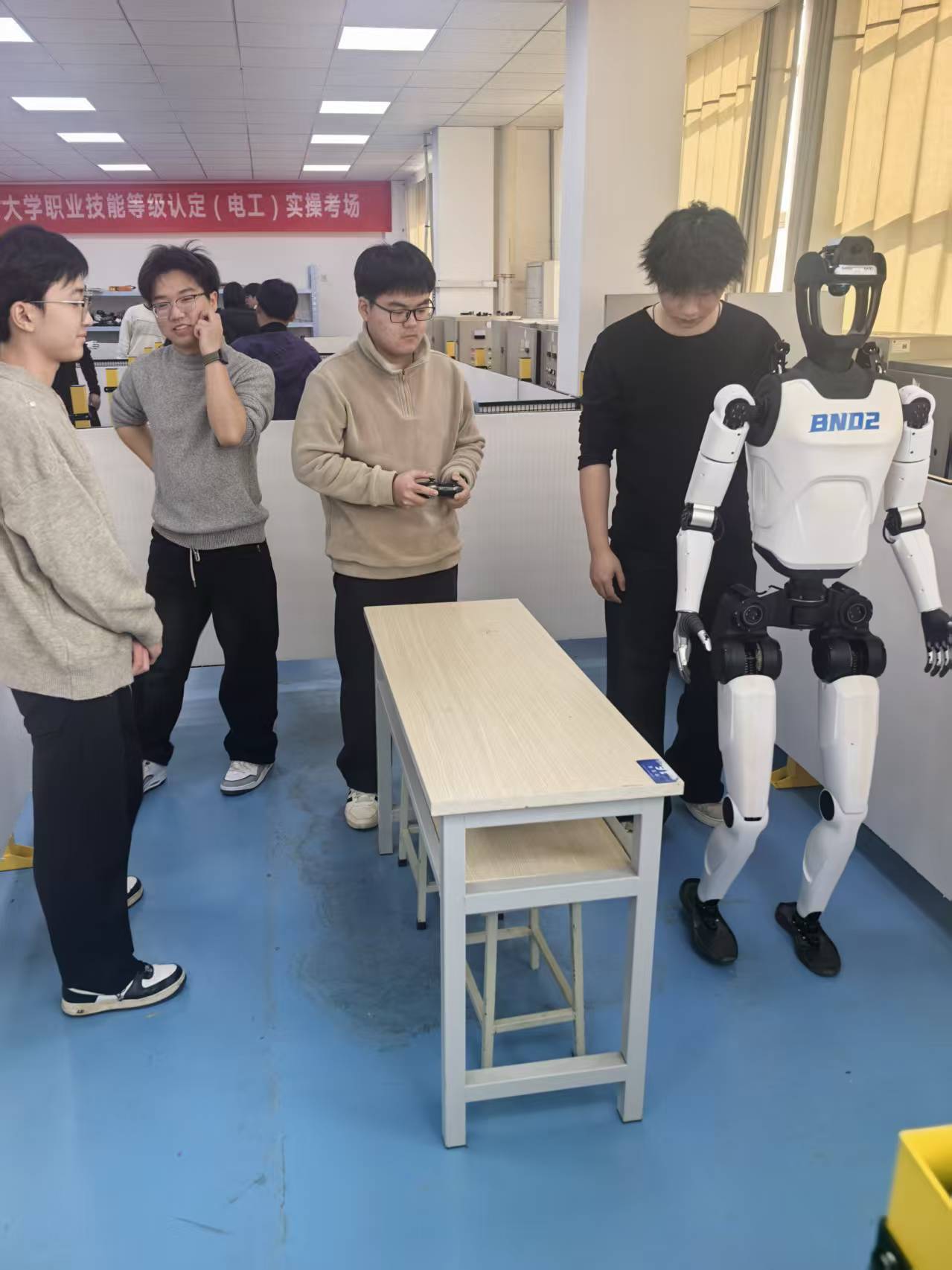 129日至30日,2025-2026年安徽省职业院校技能大赛人形机器人技术应用赛项在芜湖职业技术大学顺利举办。本次赛事聚焦人形机器人与具身智能领域前沿技术,吸引了全省各职业院校39支学生队伍同台竞技、切磋技艺。今年会马艳梅、黄程龙两位老师指导的25级电气自动化技术专业陈天昊、朱昊阳两名学子组成参赛队,最终凭借扎实的专业功底和出色的实战能力,斩获该赛项二等奖一项。