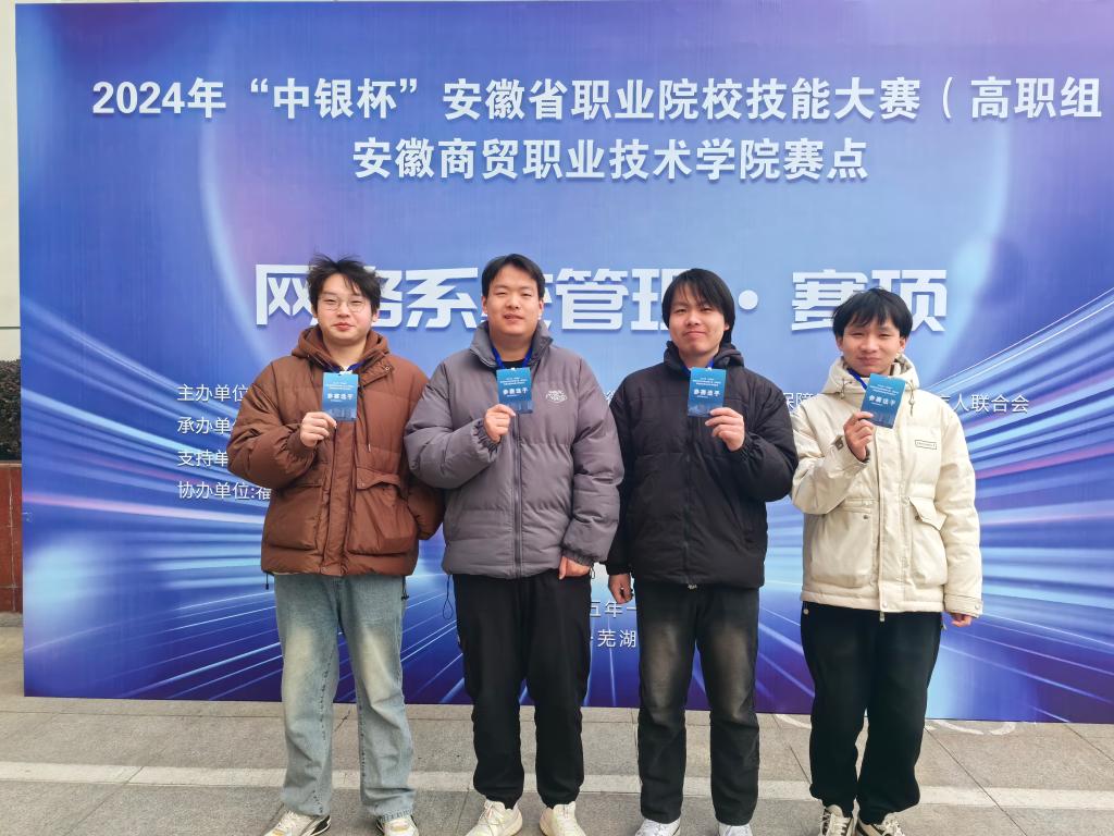 11314日,2024中银杯安徽省职业院校技能大赛(高职组)网络系统管理赛项在安徽商贸职业技术学院举办,来自安徽省30多所职业院校的82支队伍参加比赛,今年会教师戚伟、张兴宇和方项指导的由谢庆成、王元伟、高立显和杨玉宝组成2支代表队,经过激烈的角逐,最终分获一、二等奖。