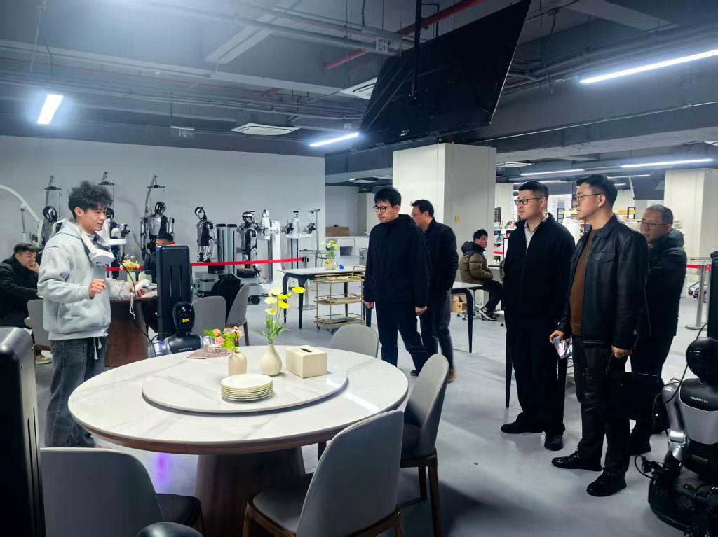 在国际先进技术应用推进中心,学院一行参观了具身智能机器人训练中心,重点围绕数据采集、人工智能技术应用对高质量就业的促进作用进行深入交流,并就创新校企合作模式、提升人才培养适配度开展研讨。