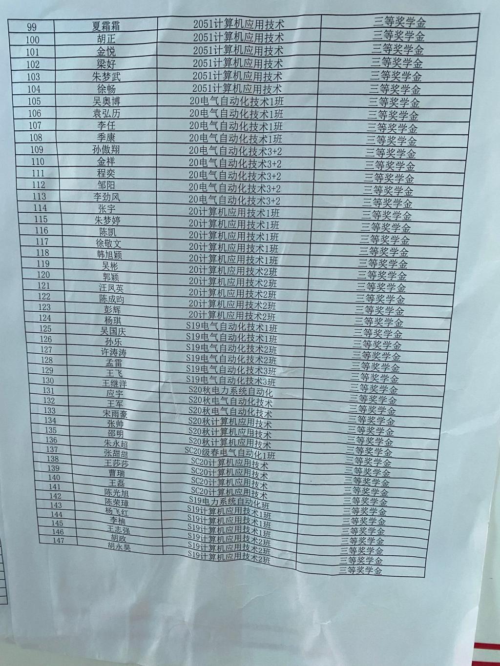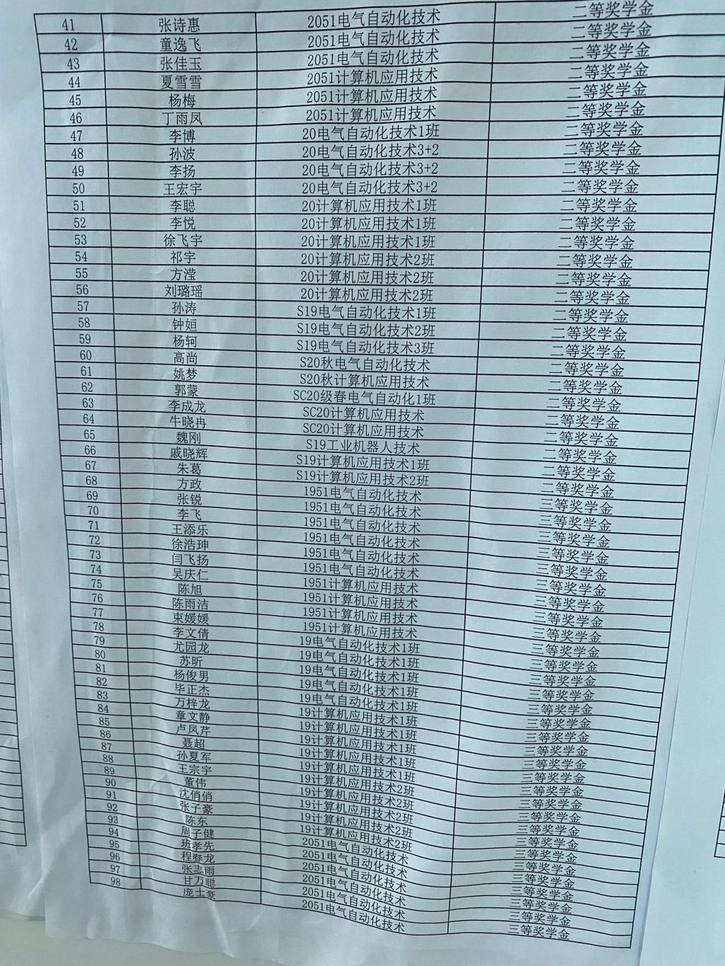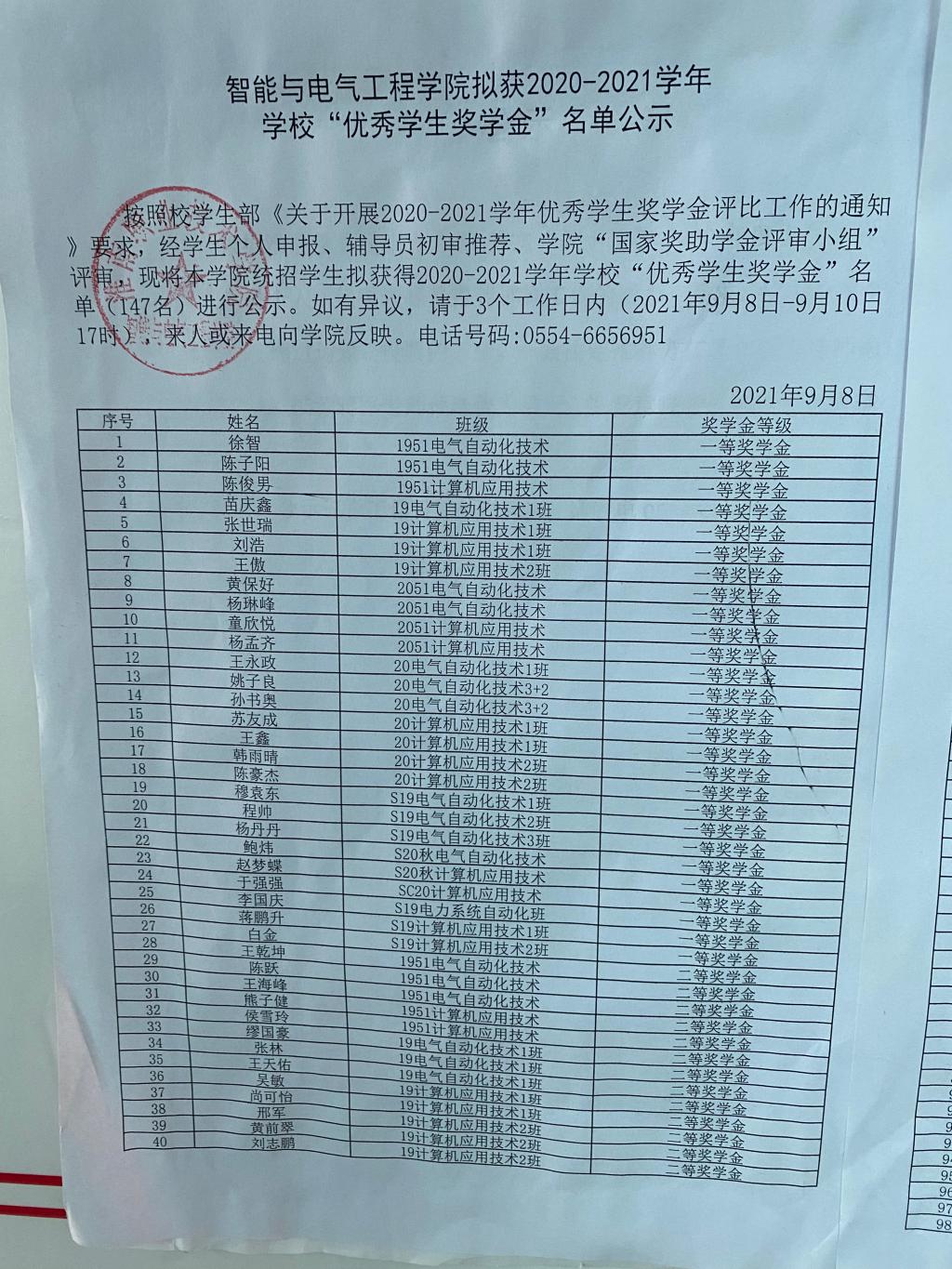 2020-2021学年学校“优秀学生奖学金”名单公示