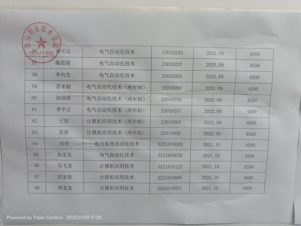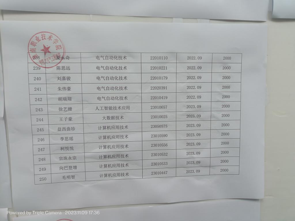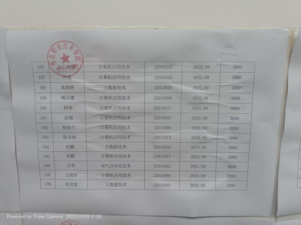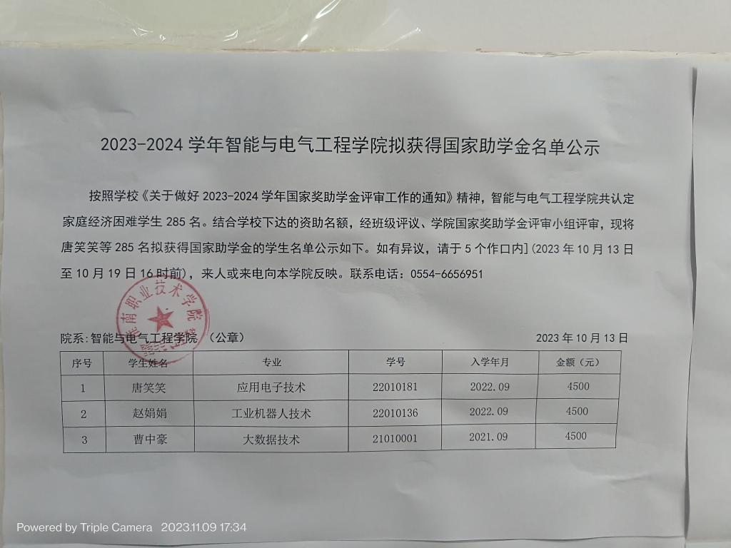 2023-2024学年国家助学金汇总表公示