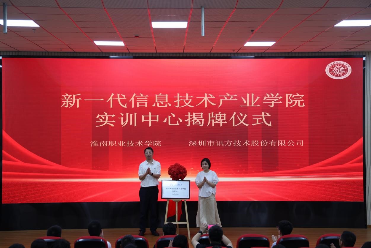 最后,校党委书记、校长袁爱清与讯方技术华中片区总经理易君携手并肩,共同迈向具有重要意义的一刻,庄重地进行了今年会新一代信息技术产业学院实训中心的揭牌仪式,实训中心揭牌标志着一个新的发展阶段的开始,象征着在教育与产业合作领域迈出了坚实的一步,为培养适应新时代需求的专业人才提供了更为优质的平台。