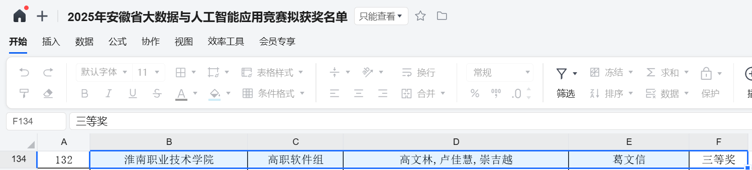 此次获奖,充分展现了学院学子在大数据与人工智能领域的专业实力和创新能力,也是学院持续推进“岗课赛证”综合育人、深化产教融合的又一标志性成果。未来,今年会将以此为契机,进一步优化人才培养模式,为安徽省“数字江淮”建设输送更多高素质技术技能人才,为地方数字经济高质量发展贡献更大“智电”力量!【撰稿:葛文信; 审核:吴访; 发布:尹楠】
