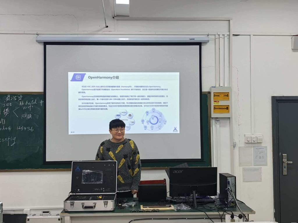 本次培训特邀设备供应商讯方技术工程师授课,课程聚焦鸿蒙与星闪技术及实操应用有序推进。培训内容兼顾理论讲解与实操演练,先系统讲解鸿蒙、星闪背景概况及鸿蒙全栈开发实验箱相关知识,再逐步开展OpenHarmony设备开发环境搭建、实验软件使用、鸿蒙编译工具链构建等基础实操,后续重点完成基于LiteOS-M内核的任务管理、光照强度采集、MQTT平台应用及华为云数据流转等核心实验。培训过程中,讲师结合经验案例细致讲解,现场示范指导、解答疑难,有效调动了参训人员的学习积极性。培训期间,参训人员严守纪律,携带资料认真记录研讨。参训教师反馈,培训内容贴合实际工作,针对性、实用性强,有效掌握了设备操作维护技巧。