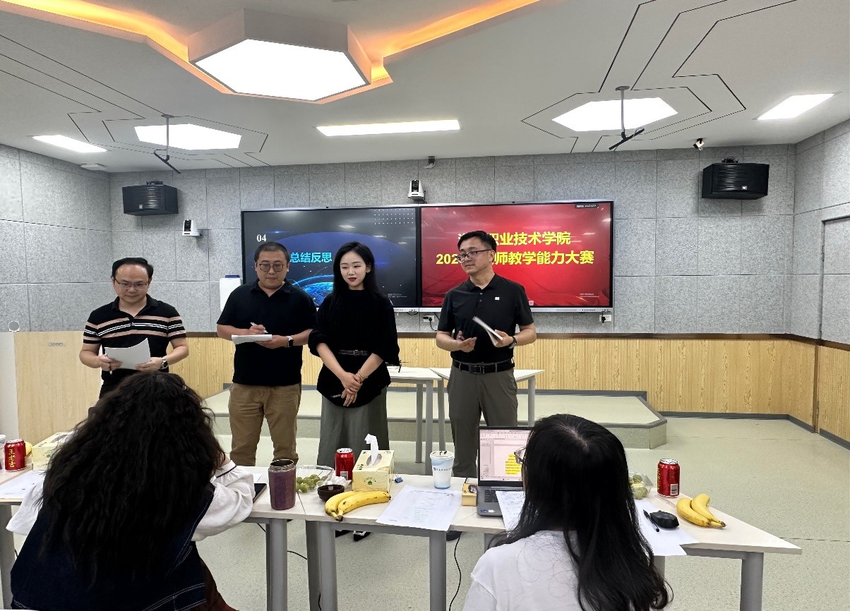 比赛中,各参赛教师从教学实施报告讲解、无生教学和答辩三个环节进行展示。在教学实施报告讲解中,教师思路清晰、语言表达精炼,从教学整体设计、教学实施流程、学生学习效果、反思与改进四个方面对报告进行汇报;无生教学环节,各参赛教师展示了娴熟的实践教学能力和丰富的信息化应用手段,并将思政元素巧妙地融入教学课堂,充分展现了学校教师团队过硬的教学基本功和积极向上的精神风貌;答辩环节,各参赛教师针对评审专家提出的问题,条理清晰地进行回答。