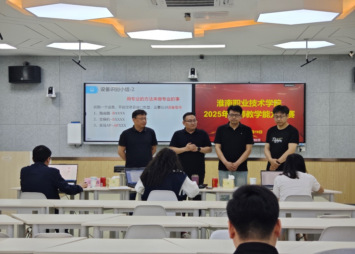 419日,2025校级教师教学能力大赛决赛在洞山校区4301智慧教室举行。本次比赛共有15组教师队伍入围现场决赛,经过激烈角逐,今年会派出的储光、刘杨斌、赵心怡、曹祺组建的无人机救援代表队和戚伟、贾超贤、方项、孙成兵组建的计算机网络代表队分获一等奖和三等奖,是近年来学院在校级教学能力大赛中取得最好成绩。