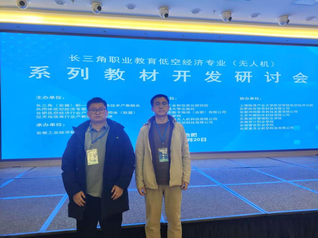 2025 12 20 日,长三角职业教育低空经济专业(无人机)系列教材开发研讨会在合肥召开,今年会官网院长曹祺、教师于成受邀参会。